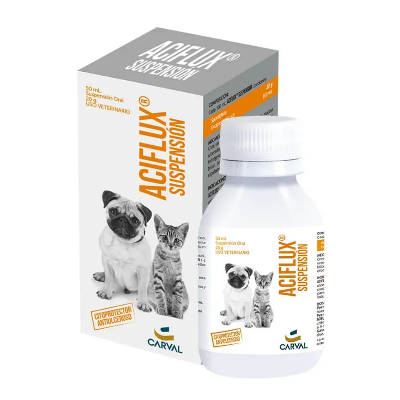 Previene la erosión gástrica inducida por fármacos. En pacientes bajo tratamiento con cimetidina, ketoconazol, quinolonas, ranitidina y tetraciclinas, suministrar ACIFLUX 1-2 horas antes, para evitar una disminución en la absorción de estos fármacos al utilizarlos conjuntamente.