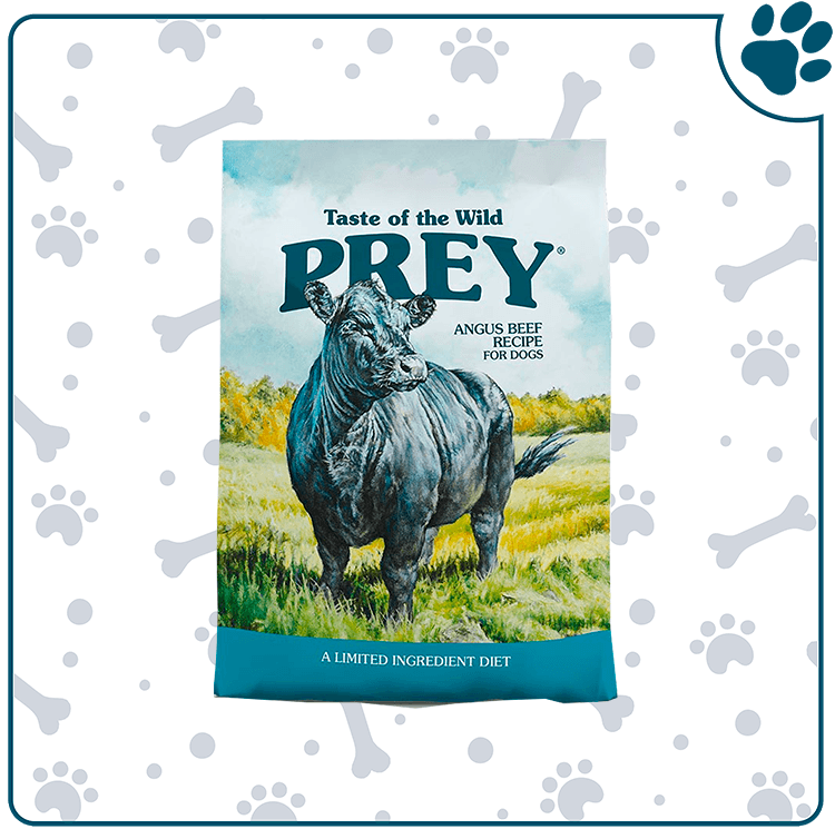 Taste Of The Wild Prey – Angus Beef Perro, esta compuesta de carne de res, lentejas, orujo de tomate, aceite de girasol, aroma natural, fosfato dicálcico, aceite de salmón (fuente de DHA), sal, DL-metionina, cloruro de colina, taurina, producto de fermentación de Lactobacillus plantarum seco, producto de fermentación de Bacillus subtilis seco, Lactobacillus acidophilus seco producto de fermentación, producto de fermentación de Enterococcus faecium seco, producto de fermentación de Bifidobacterium animalis seco, suplemento de vitamina E, proteinato de hierro, proteinato de zinc, proteinato de cobre, sulfato ferroso, sulfato de zinc, sulfato de cobre, yoduro de potasio, mononitrato de tiamina, proteinato de manganeso, óxido manganoso, ascórbico ácido, suplemento de vitamina A, biotina, niacina, pantotenato de calcio, sulfato de manganeso, selenito de sodio, clorhidrato de piridoxina, suplemento de vitamina B12, riboflavina, suplemento de vitamina D3, ácido fólico. Proteína cruda 27.0% mínimo, Grasa cruda 15.0% mínimo, Fibra cruda 5.0% máximo, Humedad 10.0% máximo, DHA (ácido docosahexaenoico) 0,05% mínimo, Zinc 150 mg / kg mínimo, Selenio 0,35 mg / kg mínimo, Vitamina A 15.000 UI / kg mínimo, Vitamina e 150 UI / kg mínimo, Taurina – 0.12% mínimo, Ácidos grasos omega-6 – 2.5% mínimo, Ácidos grasos omega-3 – 0.5% mínimo.