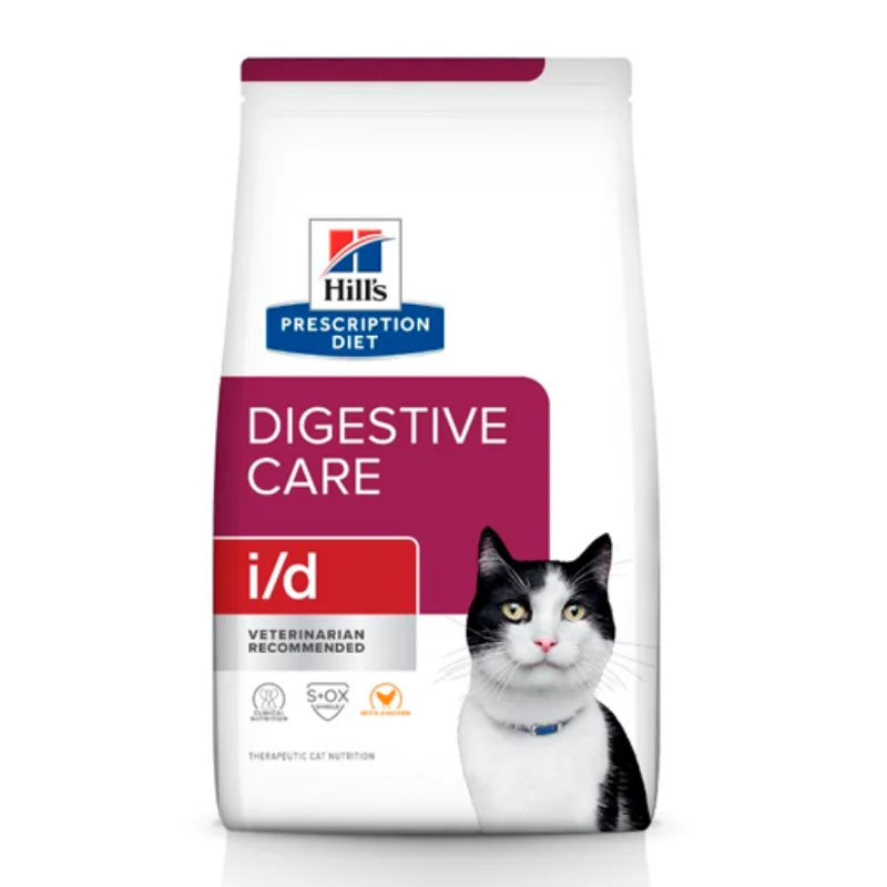 Hills – Prescription Diet I/D Digestive Care Cat – Nutrición altamente digestible y de fibra prebiótica para gatos con problemas digestivos. Su fórmula está diseñada para calmar trastornos digestivos y restaurar el bienestar intestinal.