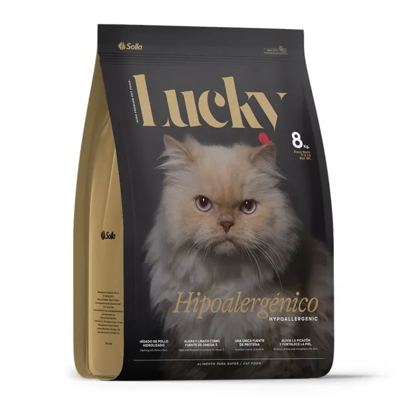 Lucky Hipoalergénico es un alimento high premium de alta tolerancia, especialmente diseñado para gatos con alergias, piel sensible o intolerancias alimentarias. Su fórmula avanzada ofrece protección desde el interior, gracias a ingredientes altamente funcionales que ayudan a reducir reacciones adversas y a mejorar el bienestar general.