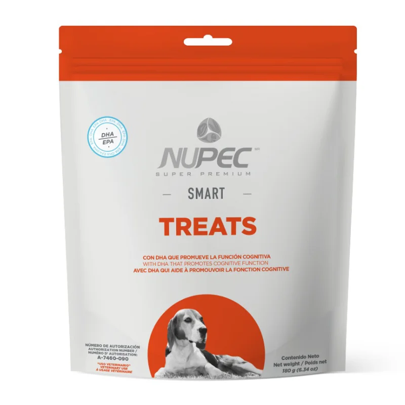 Son un delicioso y saludable snack diseñado específicamente para potenciar la función cognitiva de tu mejor amigo. En Nupec entendemos que el aprendizaje y la salud mental de los caninos son cruciales, por lo que hemos formulado este producto con ácidos grasos esenciales Omega 3 (EPA/DHA), que son fundamentales para el desarrollo y mantenimiento de un cerebro sano.