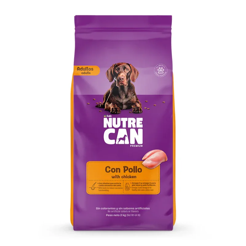 Nutrecan con pollo: una receta premium con biotina, omegas 3 y 6 para un pelaje fuerte, brillante y una piel saludable. Sin colorantes ni sabores artificiales, con croquetas fáciles de masticar y una fórmula digestiva que cuida su bienestar desde adentro.